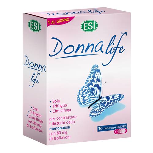 Donna lifeDescrizione Integratore alimentare a base di Magnesio, Vitamina B6, Soia, Cimicifuga e Trifoglio in grado di contrastare la stanchezza e tutti gli altri sintomi legati alla menopausa. Le innovative Capsule retard consentono un rilascio graduale delle sostanze nell'organismo, facilitando l'assorbimento dei nutrienti contenuti e beneficiare a pieno delle caratteristiche del prodotto. Il Magnesio e la Vitamina B sostengono l'organismo contro l'affaticamento fisico e mentale, contribuendo alla normale funzionamento degli organi, delle funzioni organiche e del sistema nervoso, migliorando lo stato psicologico. La Soia ed il Trif...